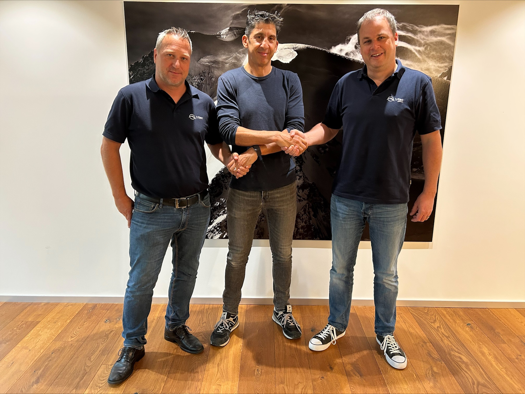 Bild: v. l. n. r. Roland Hofmann, Co-Geschäftsführer tritec, Thomas Gafner, bisheriger Inhaber und Geschäftsführer Solan GmbH und Silvio Gely, Co-Geschäftsührer tritec. Foto: naturenergie holding AG