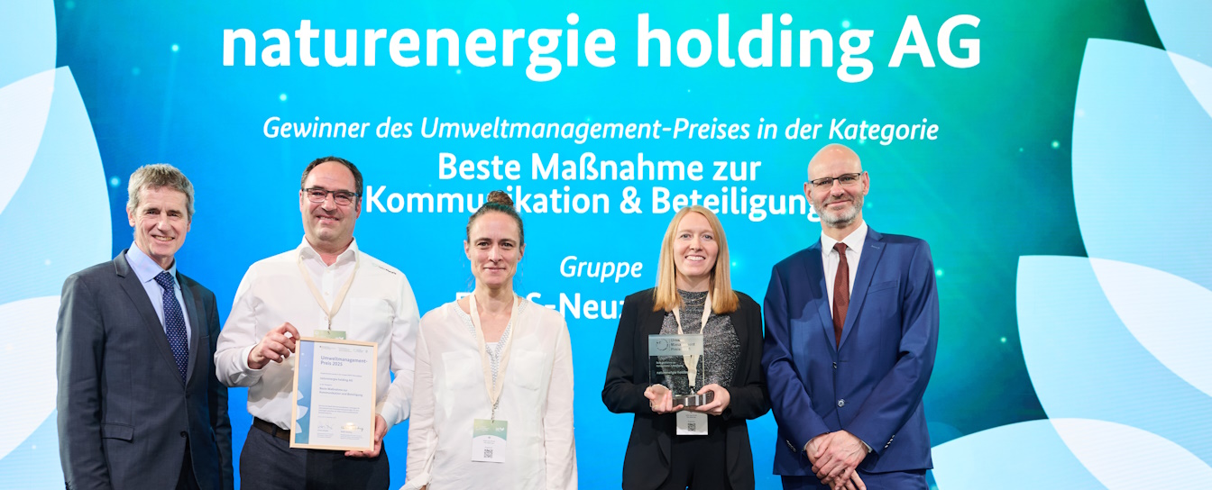 Rheinfelden/Berlin, 14. November 2025 – naturenergie gehört zu den Gewinnern des Umweltmanagementpreises. Das Energieunternehmen hat diesen mit seinem Neophytenhalbtag in der Kategorie „Kommunikation und Beteiligung“ gewonnen.