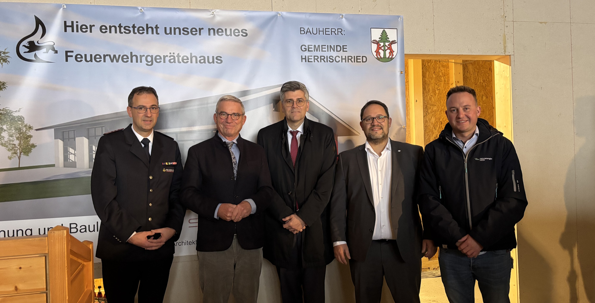 Wehrhalden, 15. Dezember 2025. Beim Richtfest des neuen Feuerwehrgerätehauses in Wehrhalden durfte die Gemeinde zahlreiche Gäste aus Politik und Verwaltung begrüßen. Neben Innenminister Thomas Strobl waren auch Bürgermeister Christian Dröse, Landrat Dr. Martin Kistler, naturenergie-Kommunalbetreuer Roman Gayer sowie naturenergie netze-Baukoordinator Cedrick Kübeck vor Ort, um sich ein Bild vom Fortschritt der Arbeiten zu machen.