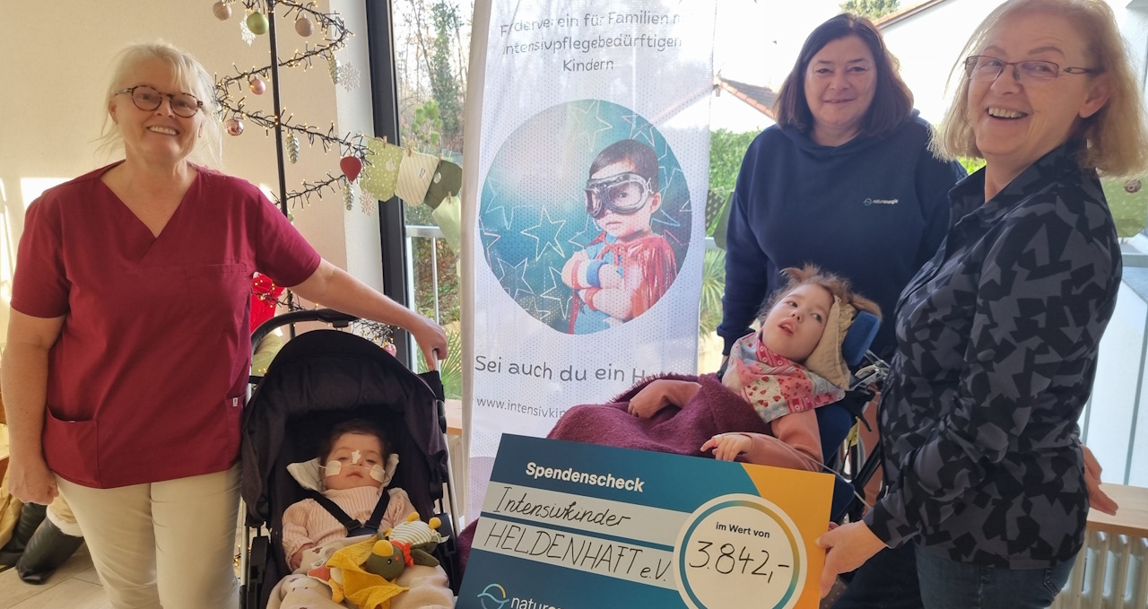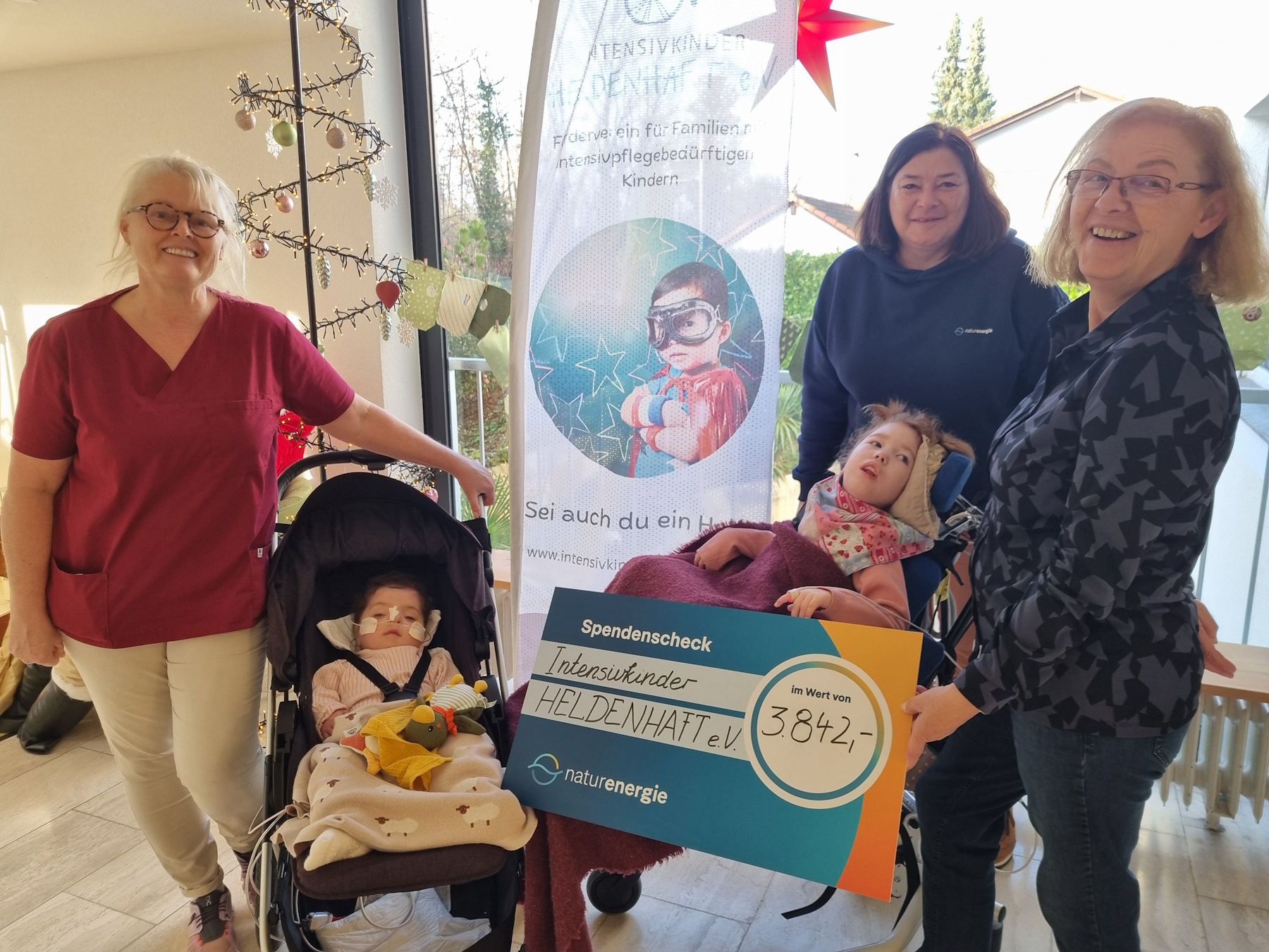 Bad Bellingen, 8. Januar 2026. Ein herzliches Zeichen der Solidarität: Die Mitarbeitenden von naturenergie haben im Rahmen ihrer Stundenspende insgesamt 3.842 Euro gesammelt und an den Intensivkinder Heldenhaft e.V. übergeben. Die Übergabe fand in Bad Bellingen statt: Birgitt Möhrle und Heike Jahnke vom Betriebsrat übergaben die Spende an Stefanie Lucke vom Verein Intensivkinder Heldenhaft e.V. Der Verein begleitet intensivpflegebedürftige Kinder in einem liebevoll betreuten Umfeld und unterstützt Familien mit fachlicher Pflege, psychosozialer Begleitung und einem sicheren Zuhause.